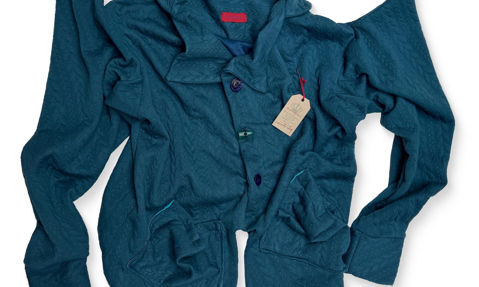Every piece is made to order, championing sustainability, individuality and craftsmanship. A garment that carries nostalgia, rebellion and crooked charm in every stitch.