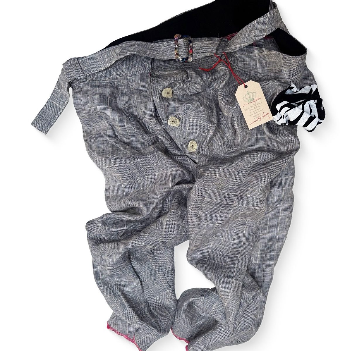Strangely Crooked Trousers reimagine 18th-century street rag tailoring through a refined, contemporary lens. Every line is intentionally off-centre: a drifting rise, a leg that cuts on the skew, mismatched hems and pockets placed just slightly askew. What looks chaotic is in fact meticulously crafted.